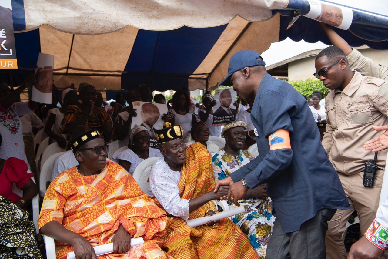 Après le canton Dohoun rassemblé le lundi 28 août à Bendekoussikro, c’est au tour des cantons Phaaris et Faafoue de réserver un accueil chaleureux au ministre Amadou Koné et sa délégation. C’était le mardi 29 août 2023 à Konankankro et Kouassiblekro. Et comme dans les quartiers de Bouaké, les populations rurales sont unanimes sur la générosité et la disponibilité du candidat du RHDP. « Amadou Koné est la bonne rivière qui donne du poisson en abondance » a résumé le chef Kra Yao, porte-parole de Nanan Kondro, chef du canton Phaaris.