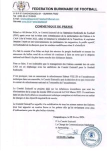 Au vu du bilan des Étalons à la CAN 2023, le contrat du technicien Français ne sera pas renouvelé, a appris ICI1FO.COM d’une annonce faite par la Fédération Burkinabè de Football ce vendredi 09 février 2024 dans un communiqué dont notre rédaction a reçu copie.