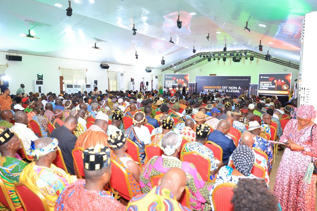 Tour à tour, les différents intervenants, le troisième vice-président du conseil régional, l’honorable Tieha Kouassi Venance, représentant le président du conseil régional du N’ZI, par ailleurs porte parole des élus et cadres de la région, la présidente des femmes, Mme Traore Pepa, le porte-parole de la chefferie, Nanan Kôtiô et le délégué régional CNJCI, Touré Aboubacar, par ailleurs délégué départemental CNJCI de dimbokro, ont exprimé leur infinie gratitude au ministre pour cette caravane de sensibilisation, qui a permis à tous les participants de mieux comprendre les risques liés à la pratique de l’orpaillage illégal. Enfin, unanimement, ils ont pris l’engagement ferme de poursuivre la sensibilisation et de s’impliquer davantage dans la lutte contre l’orpaillage illégal dans la région du N’ZI pour le bonheur et le bien-être des populations.