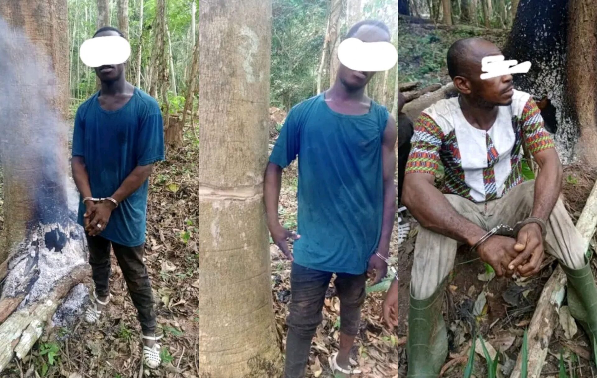 Au cours de cette patrouille, les agents ont été alertés par une fumée dense. En se rapprochant du site, ICI1FO apprend qu’ils ont découvert deux (02) individus en pleine activité illicite, mettant le feu à des troncs d’arbres.
