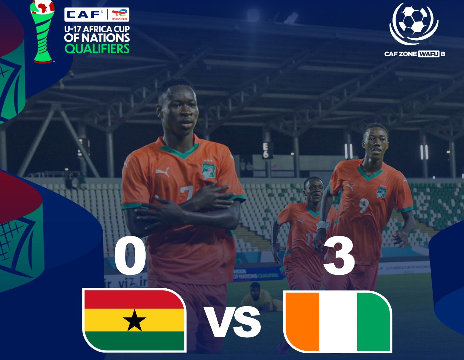 L’équipe nationale U17 de Côte d’Ivoire a validé son ticket pour les demi-finales du tournoi qualificatif après une brillante victoire 3-0 contre le Ghana, ce lundi, lors de la deuxième journée du groupe A.