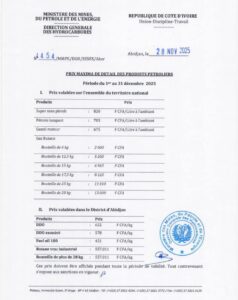 Avec l’approche des fêtes de fin d’année, ces prix stabilisés visent à garantir un accès régulé et équitable aux produits pétroliers sur l’ensemble du territoire.