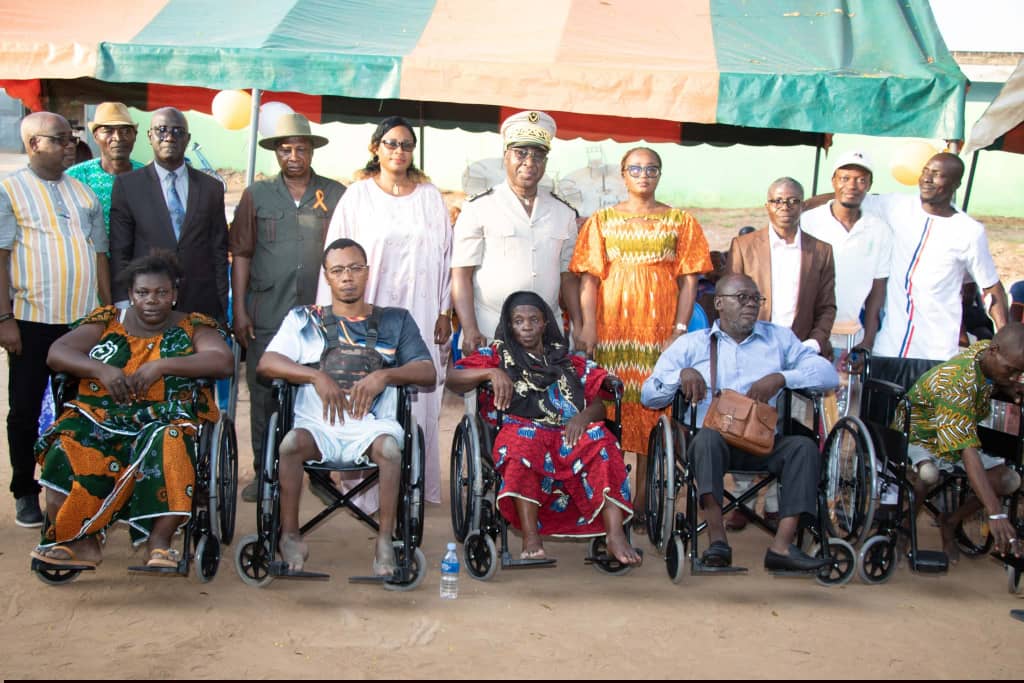 La cérémonie s’est achevée par la remise officielle de matériel orthopédique aux personnes vivant avec un handicap. Ce don, offert par Mme la Ministre Gouverneur du District autonome des Lacs, Dr Raymonde Goudou Coffie, s’inscrit dans une dynamique de solidarité et de renforcement de l’autonomie des bénéficiaires.