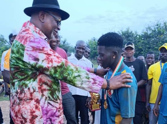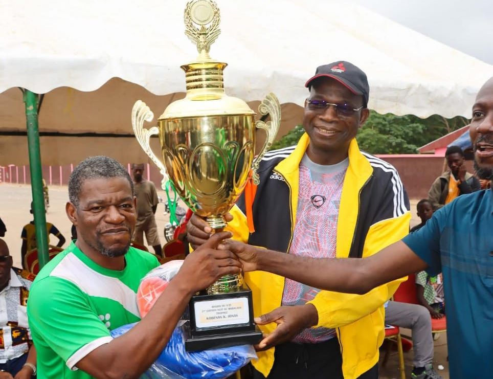 Côte d’Ivoire : Dimbokro, N’guessan Lataille Koffi remet le trophée au vainqueur du tournoi de maracana doté du trophée lobè Koffi Jonas